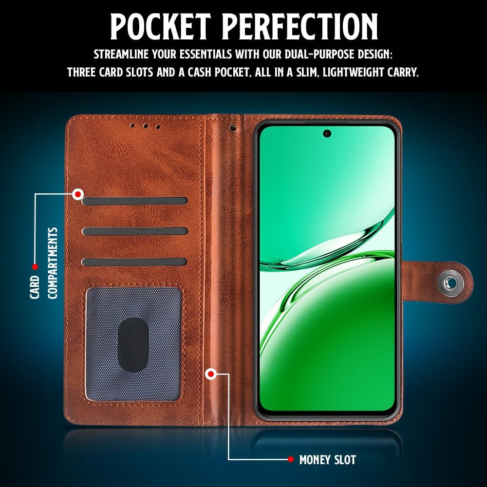 Shock Proof Flip Cover Back Case for Oppo F27 5G | Magnetic Wallet Leather Case with Stand