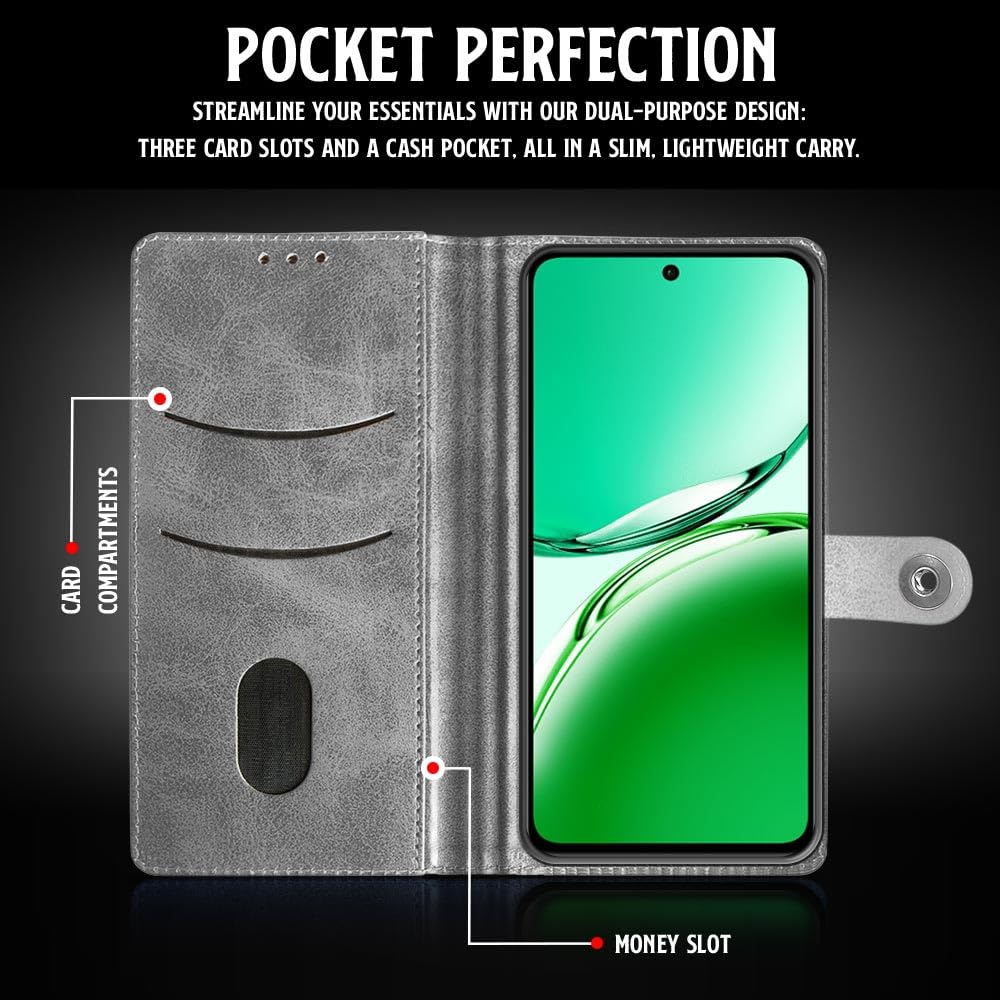 Shock Proof Flip Cover Back Case for Oppo F27 5G | Magnetic Wallet Leather Case with Stand