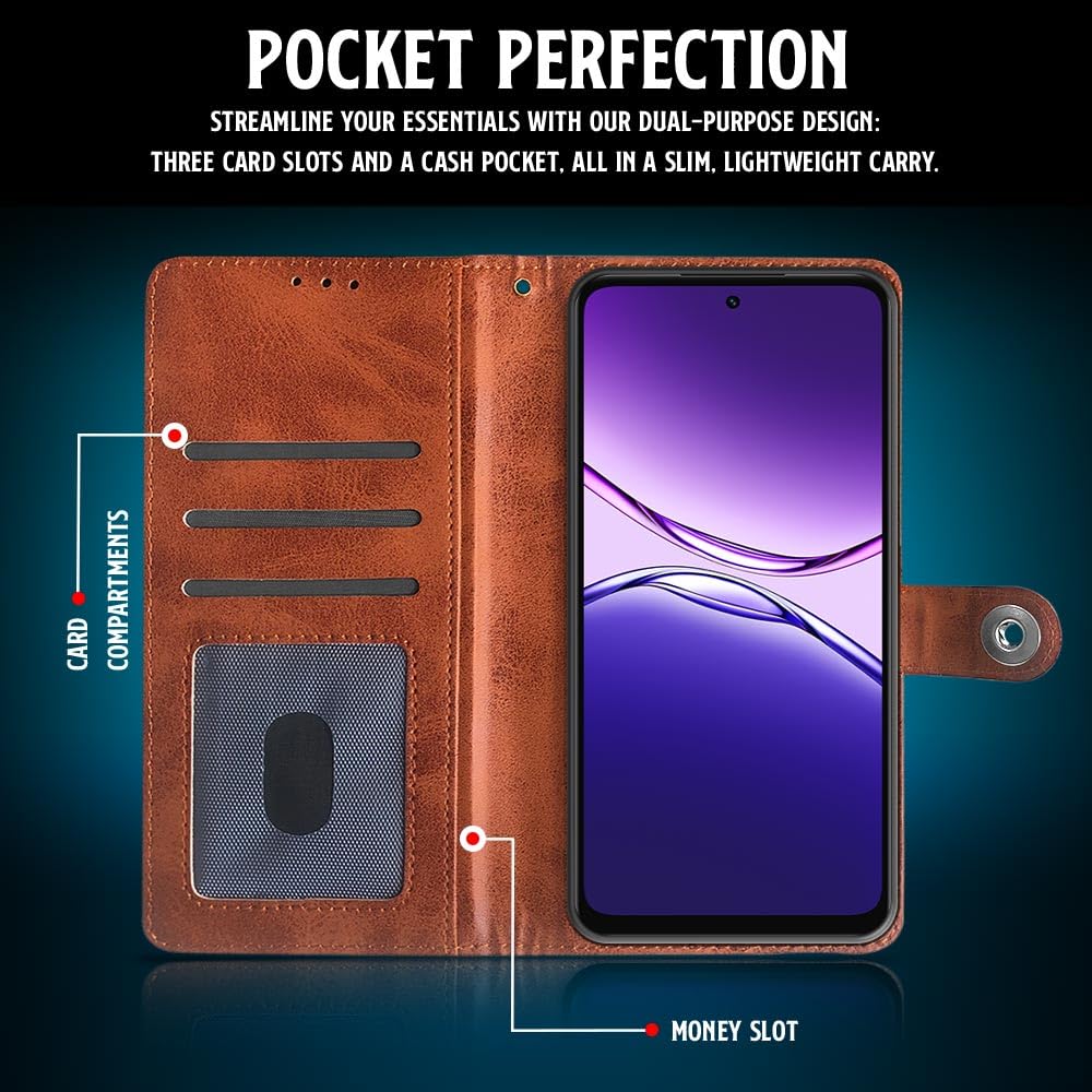 Buy premium shock proof flip cover back case for oppo k13x 5g. Leather finish with magnetic flip closure, wallet pockets and stand support. Durable protection against drops and scratches with a perfect fit for oppo k13x 5g.