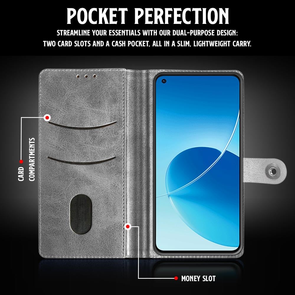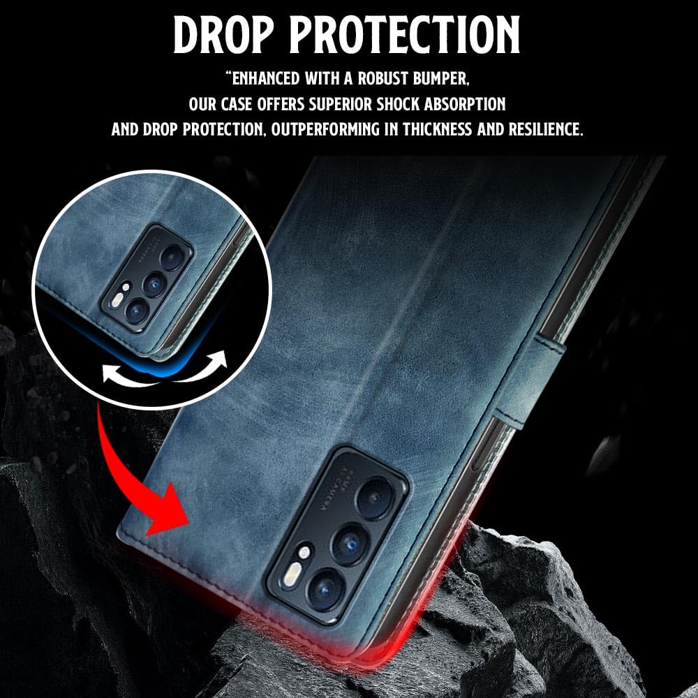 Shock Proof Flip Cover Back Case for Oppo Reno 6 5G | Magnetic Wallet Leather Case with Stand