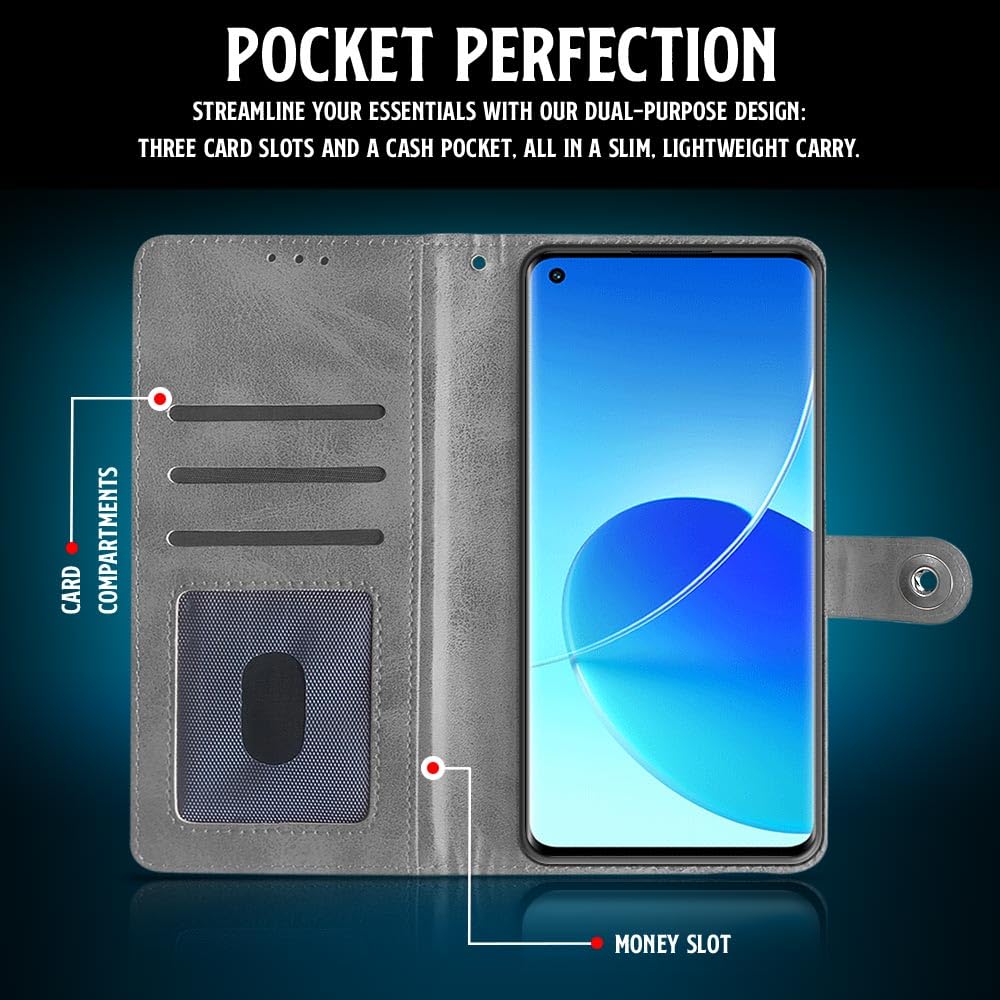 Buy premium shock proof flip cover back case for oppo reno 6 pro 5g. Leather finish with magnetic flip closure, wallet pockets and stand support. Durable protection against drops and scratches with a perfect fit for oppo reno 6 pro 5g.