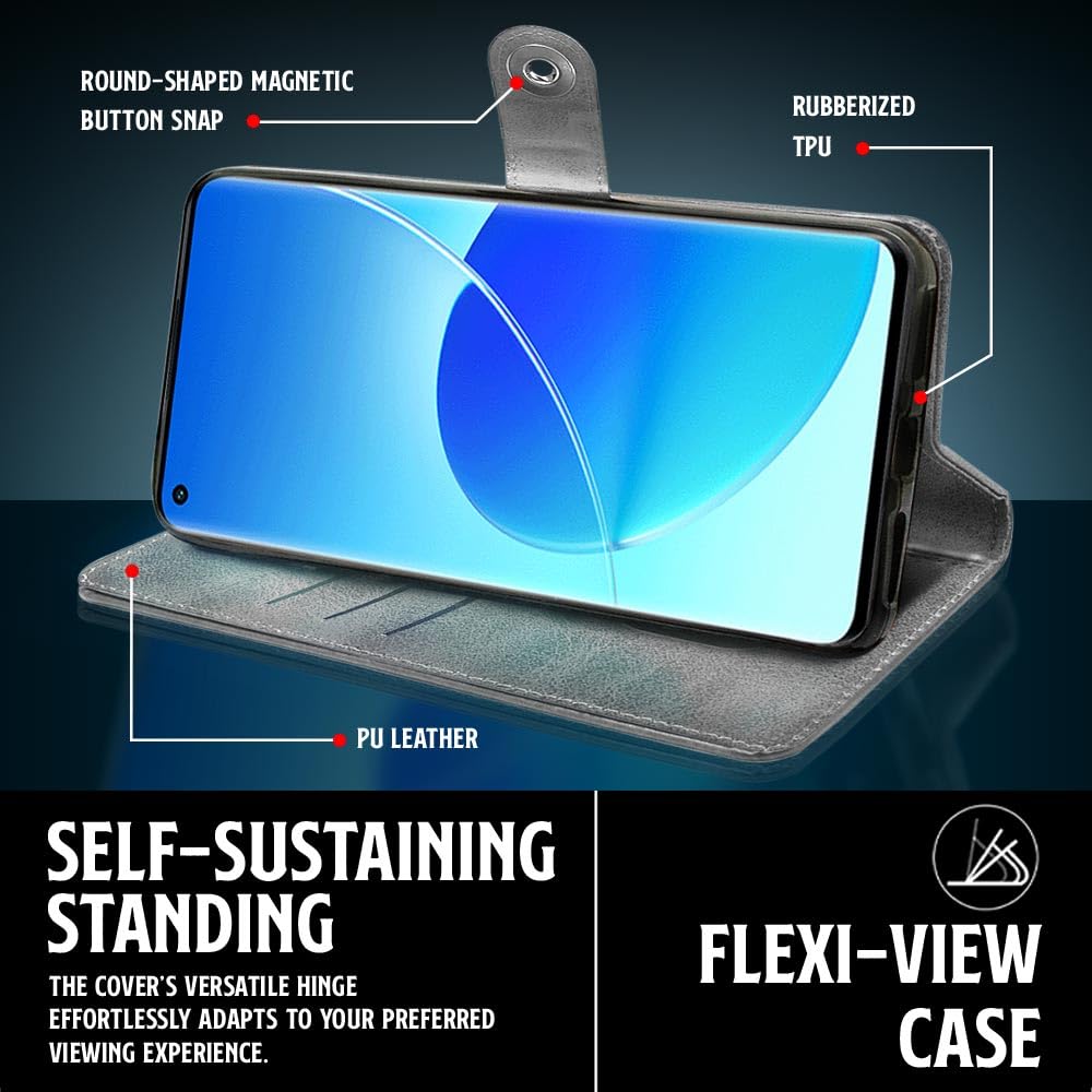Shock Proof Flip Cover Back Case for Oppo Reno 6 Pro 5G | Magnetic Wallet Leather Case with Stand