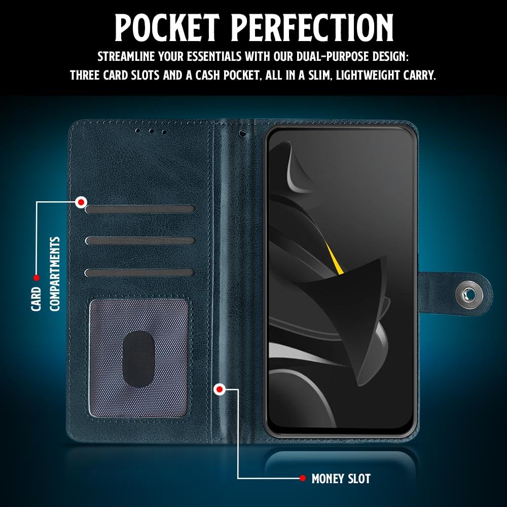 Shock Proof Flip Cover Back Case for Poco M7 Pro 5G | Magnetic Wallet Leather Case with Stand