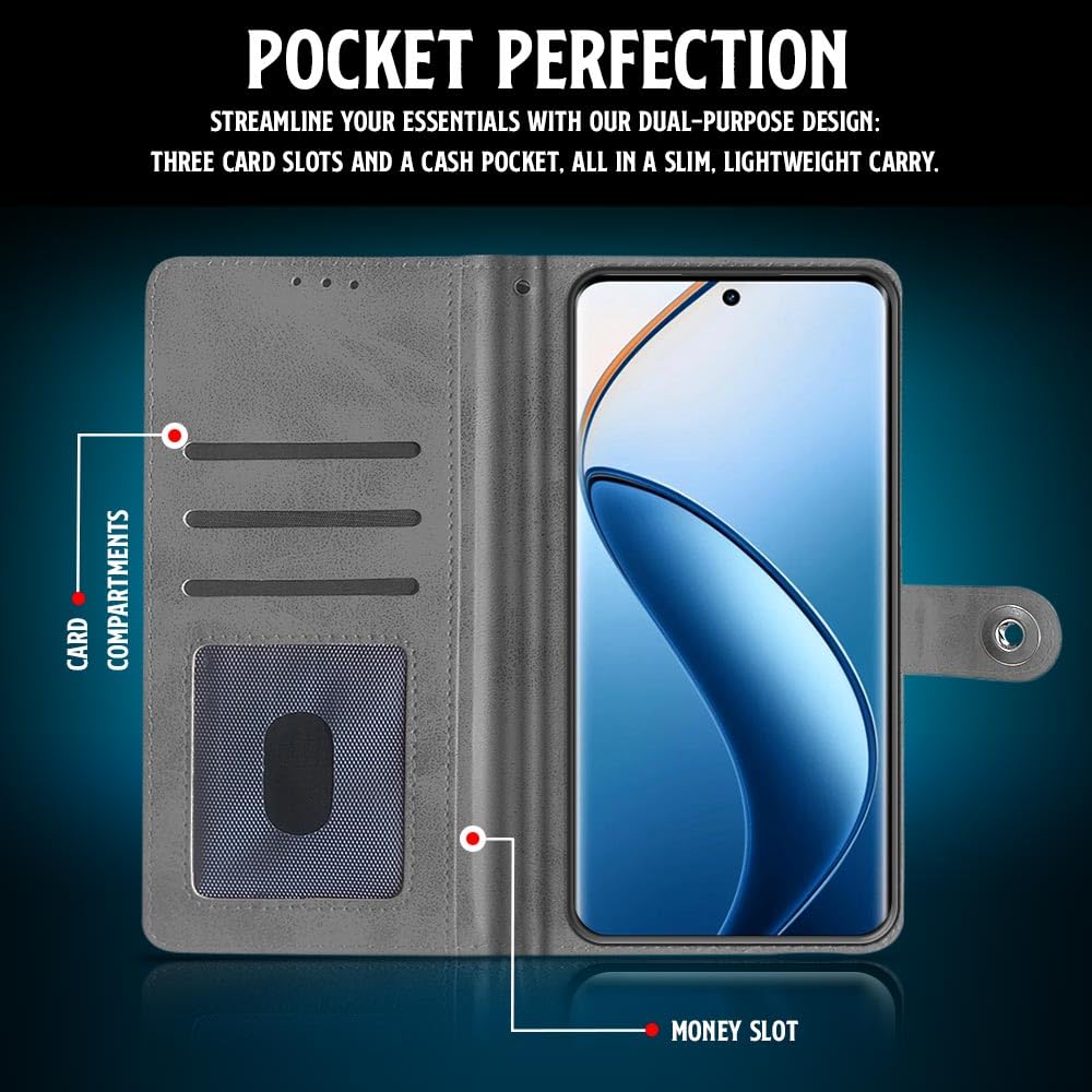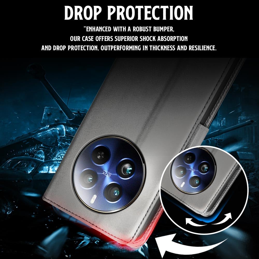 Shock Proof Flip Cover Back Case for Realme 12 Pro 5G Plus | Magnetic Wallet Leather Case with Stand