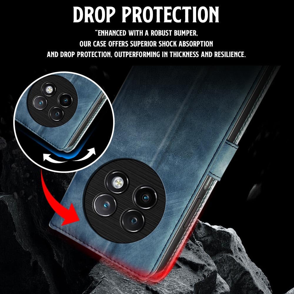 Shock Proof Flip Cover Back Case for 1+ Oneplus 12R 5G | Magnetic Wallet Leather Case with Stand