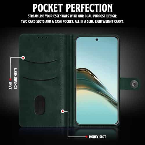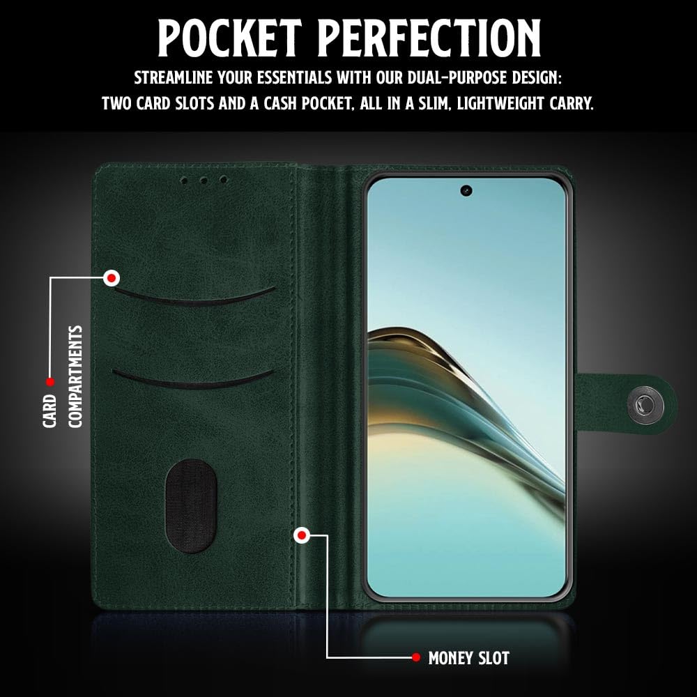 Buy premium shock proof flip cover back case for realme 13 pro 5g. Leather finish with magnetic flip closure, wallet pockets and stand support. Durable protection against drops and scratches with a perfect fit for realme 13 pro 5g.