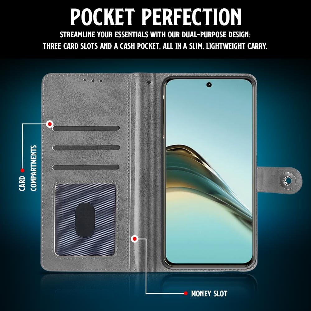 Shock Proof Flip Cover Back Case for Realme 13 Pro 5G | Magnetic Wallet Leather Case with Stand