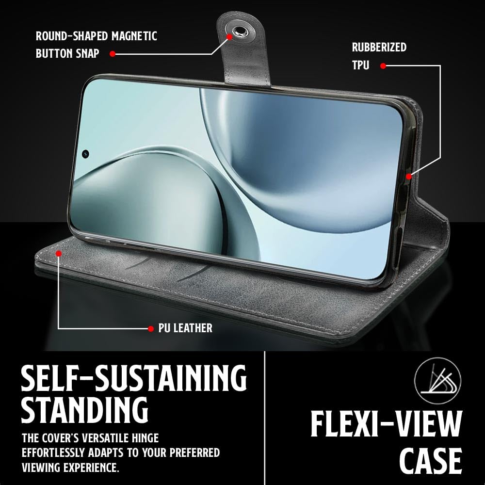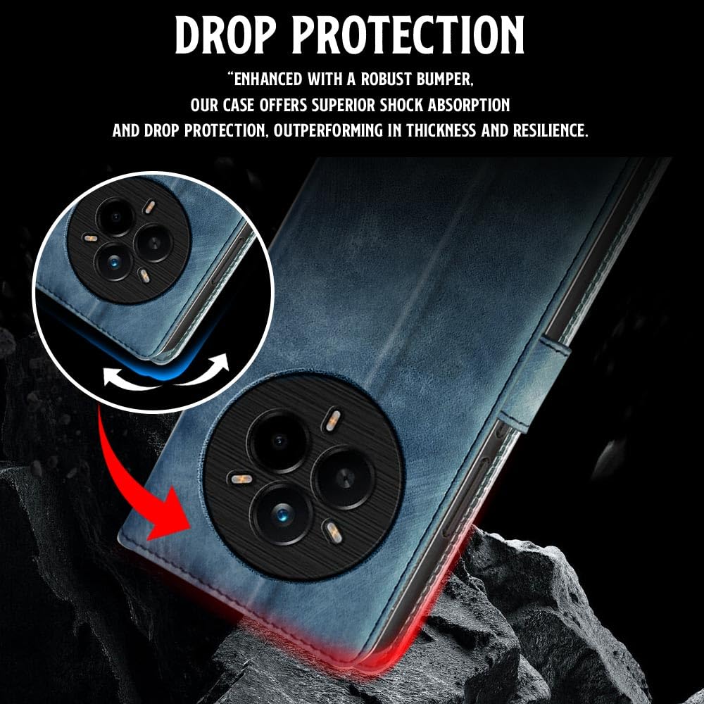 Shock Proof Flip Cover Back Case for Realme 14 Pro Plus 5G | Magnetic Wallet Leather Case with Stand