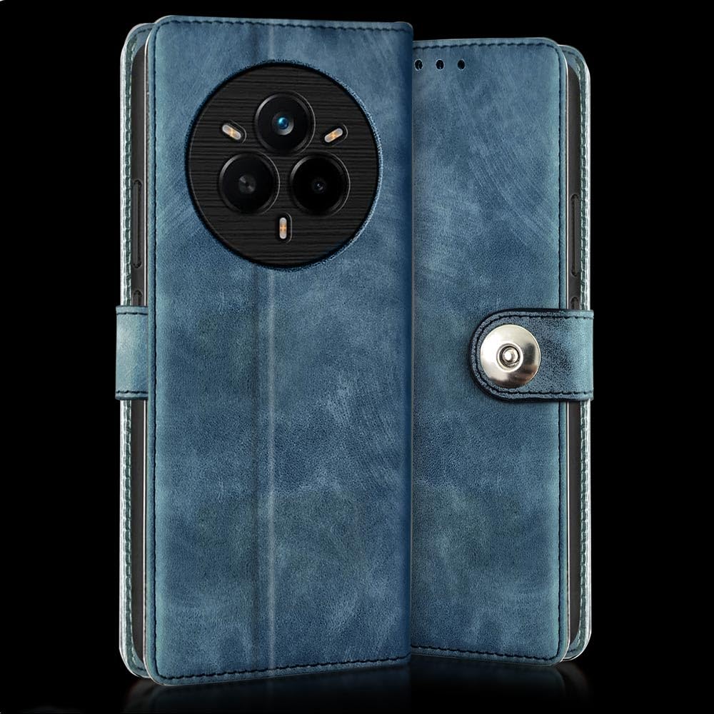 Buy premium shock proof flip cover back case for realme 14 pro plus 5g. Leather finish with magnetic flip closure, wallet pockets and stand support. Durable protection against drops and scratches with a perfect fit for realme 14 pro plus 5g.