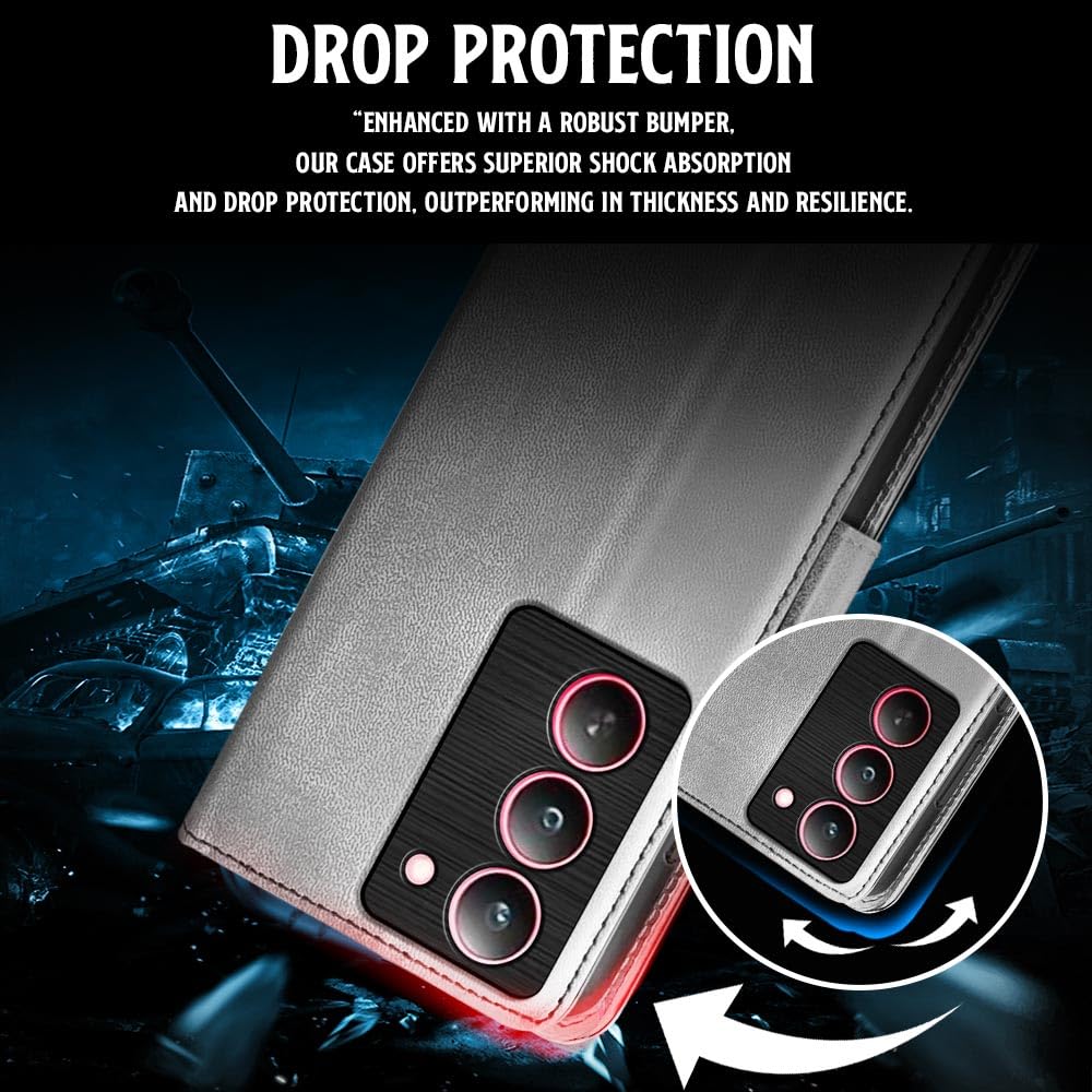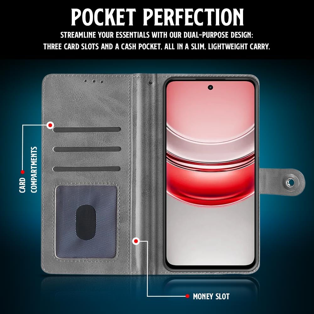 Shock Proof Flip Cover Back Case for Realme 14X 5G | Magnetic Wallet Leather Case with Stand