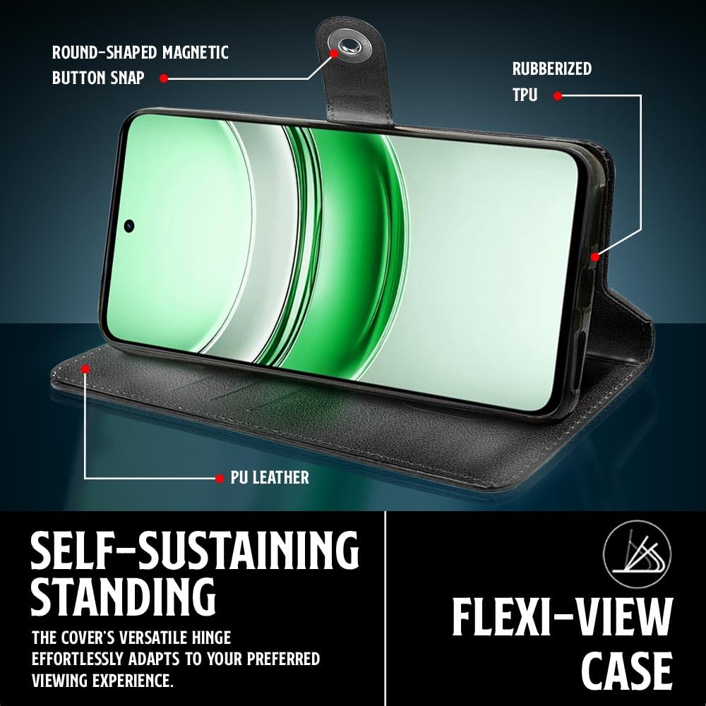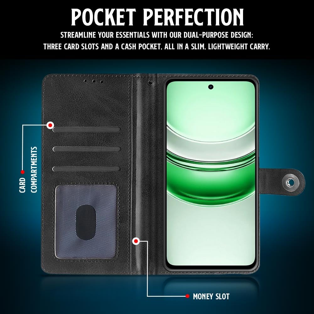 Shock Proof Flip Cover Back Case for Realme C75 5G | Magnetic Wallet Leather Case with Stand