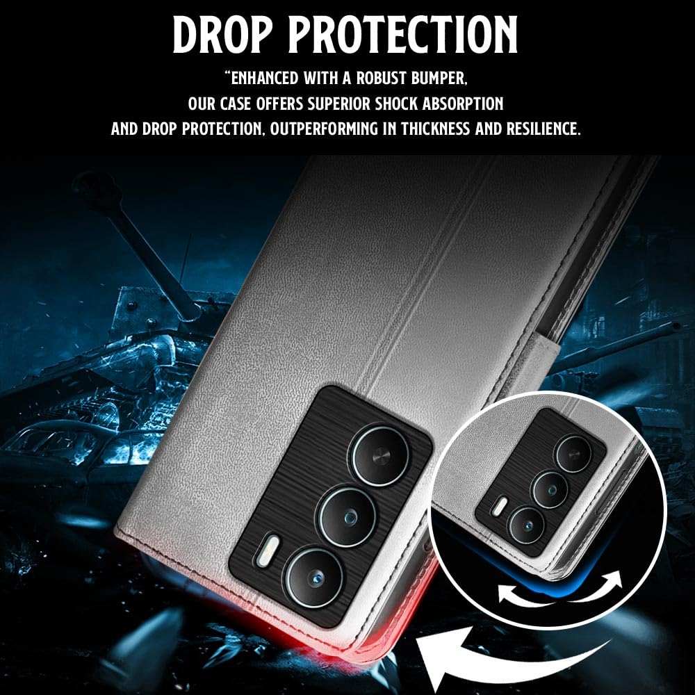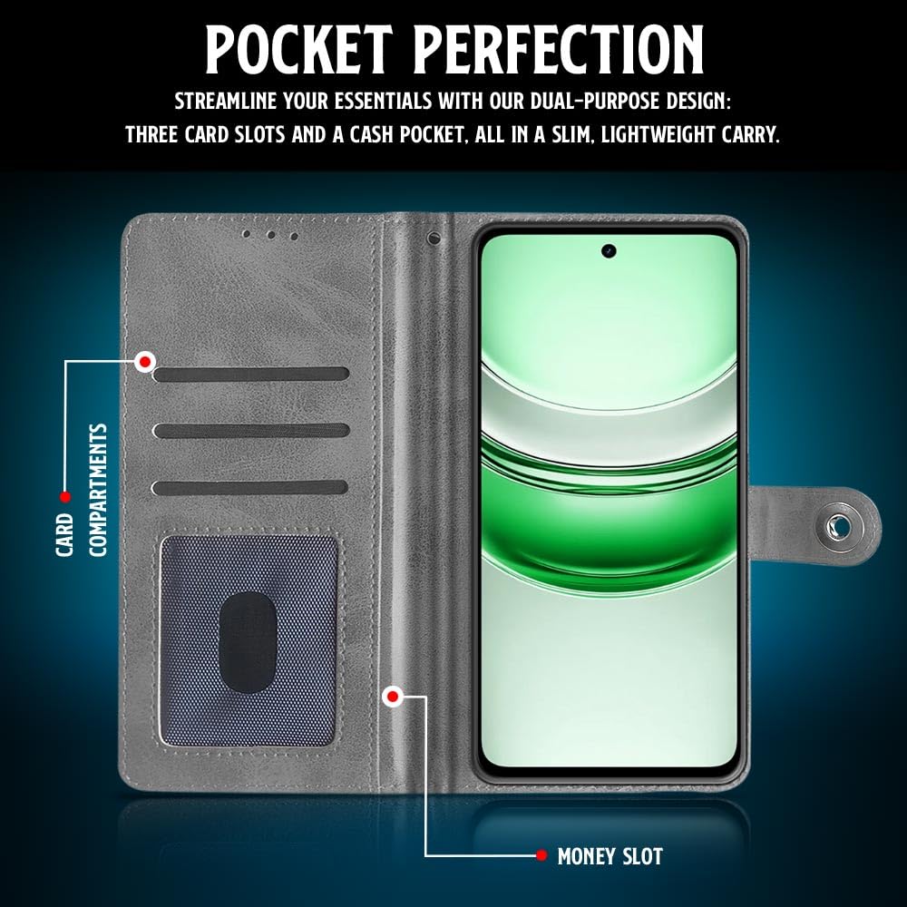 Shock Proof Flip Cover Back Case for Realme C75 5G | Magnetic Wallet Leather Case with Stand