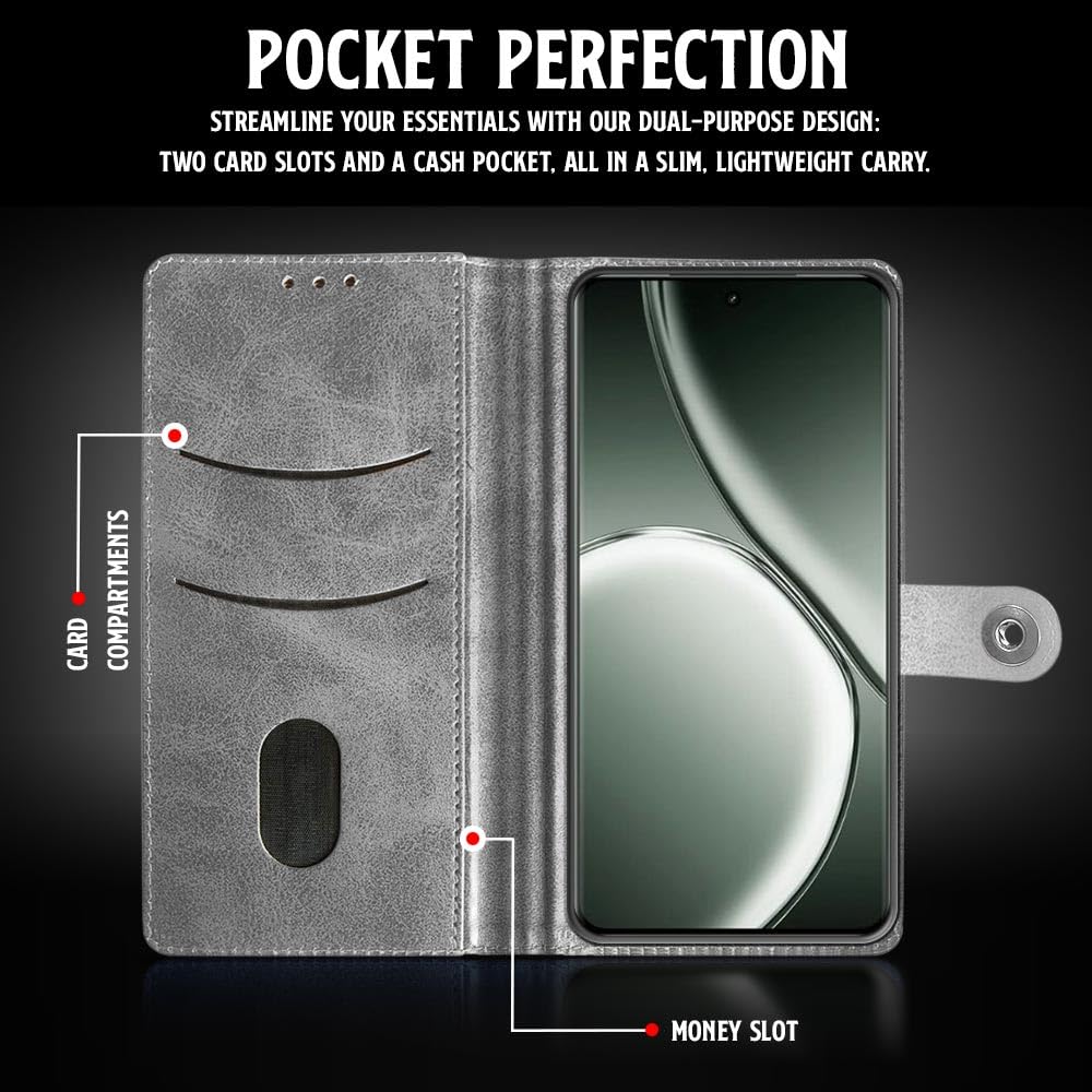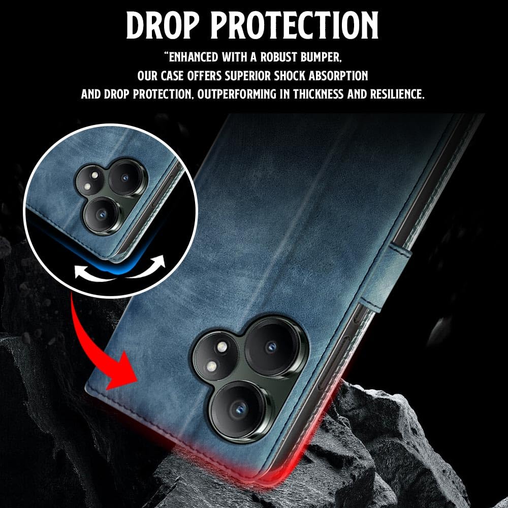 Shock Proof Flip Cover Back Case for Realme Gt 6T 5G | Magnetic Wallet Leather Case with Stand