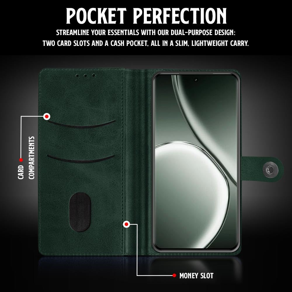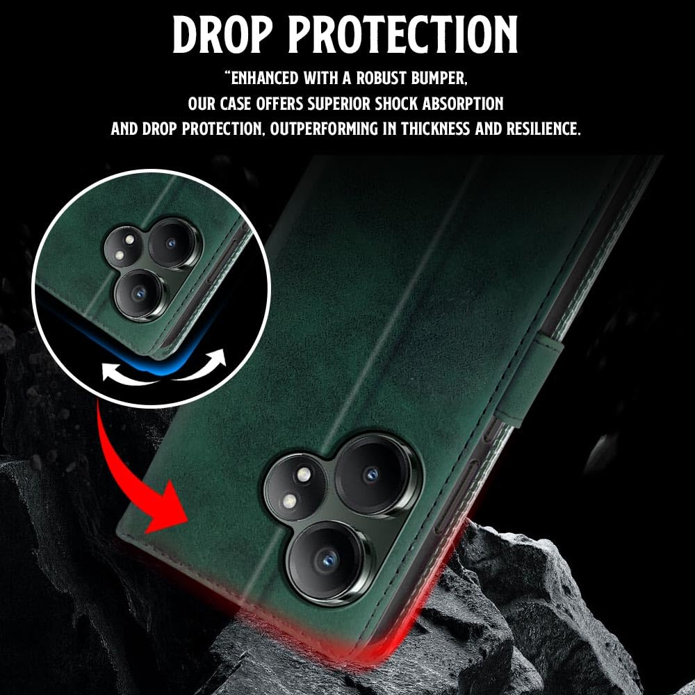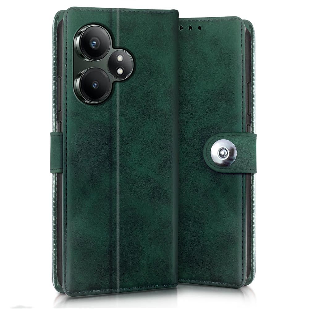 Shock Proof Flip Cover Back Case for Realme Gt 6T 5G | Magnetic Wallet Leather Case with Stand