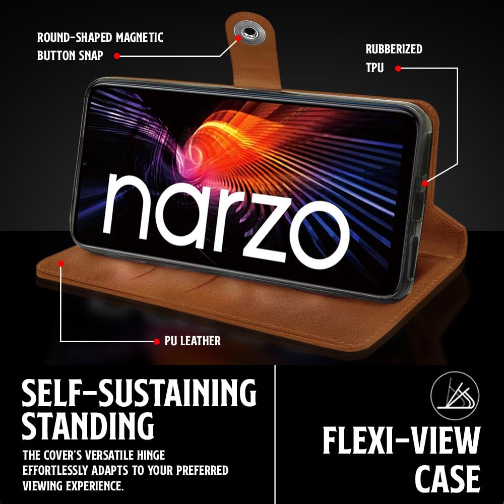 Shock Proof Flip Cover Back Case for Realme Narzo 50 5G | Magnetic Wallet Leather Case with Stand