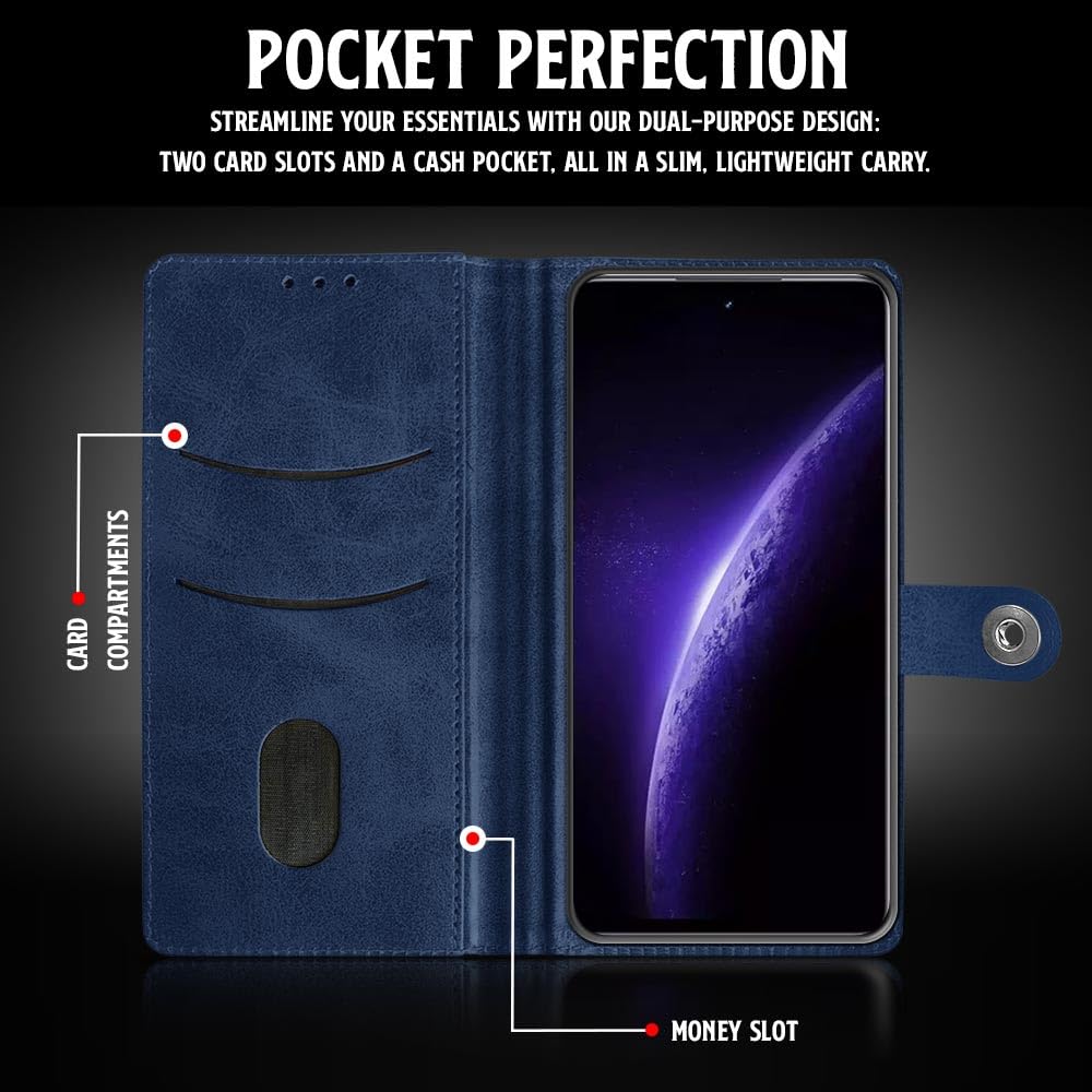 Buy premium shock proof flip cover back case for realme narzo 60x 5g. Leather finish with magnetic flip closure, wallet pockets and stand support. Durable protection against drops and scratches with a perfect fit for realme narzo 60x 5g.