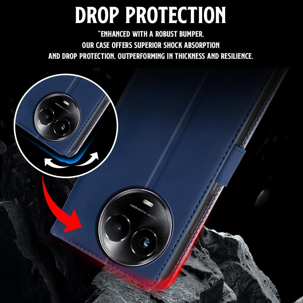 Shock Proof Flip Cover Back Case for Realme Narzo 60X 5G | Magnetic Wallet Leather Case with Stand