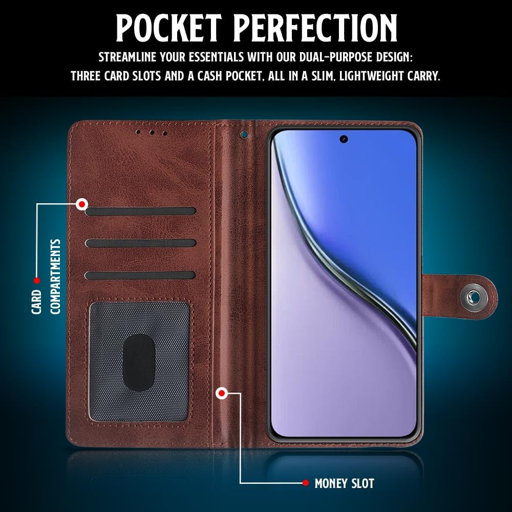 Shock Proof Flip Cover Back Case for Realme P3 Ultra 5G | Magnetic Wallet Leather Case with Stand