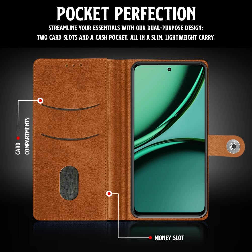 Shock Proof Flip Cover Back Case for 1+ Oneplus 12R 5G | Magnetic Wallet Leather Case with Stand