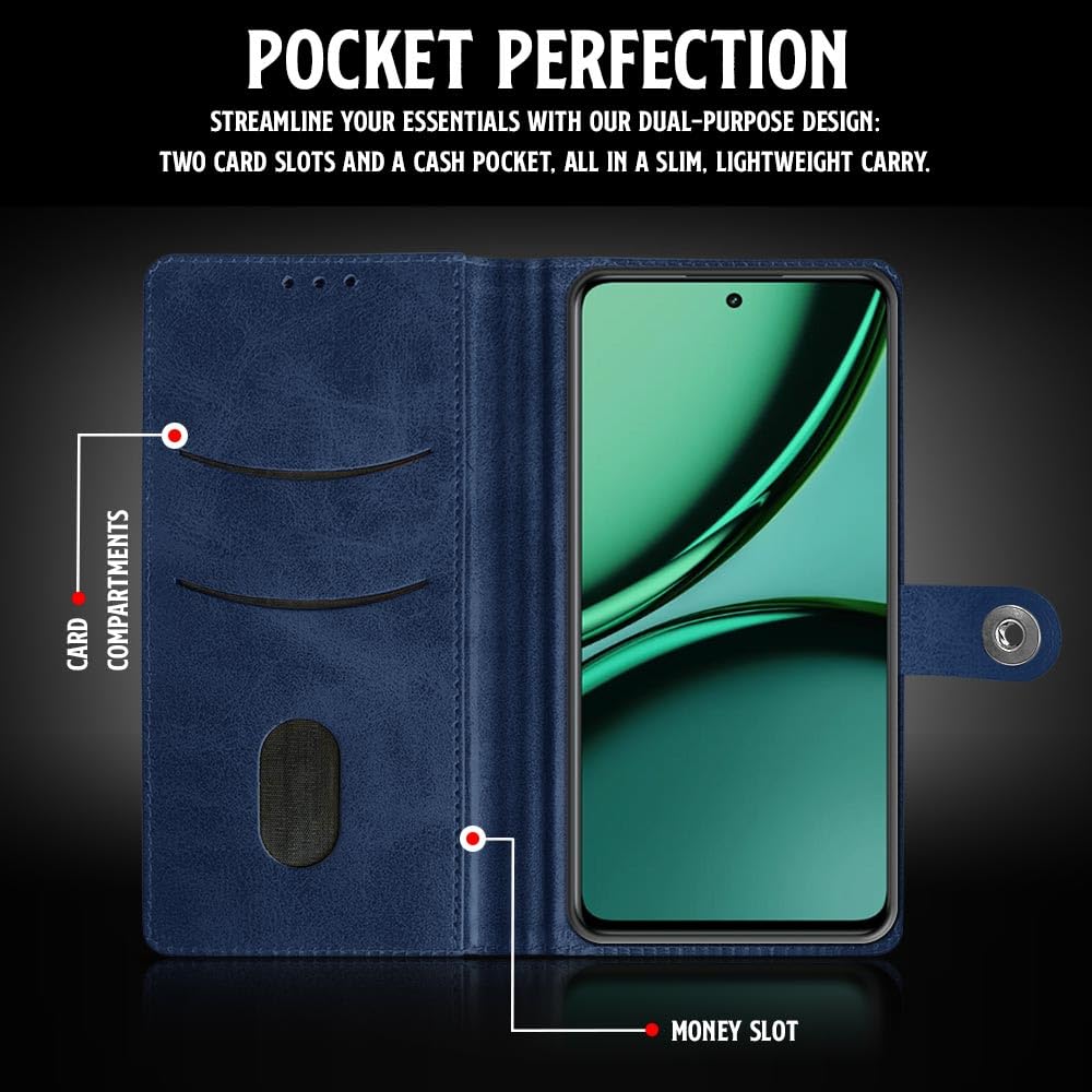 Shock Proof Flip Cover Back Case for 1+ Oneplus 12R 5G | Magnetic Wallet Leather Case with Stand