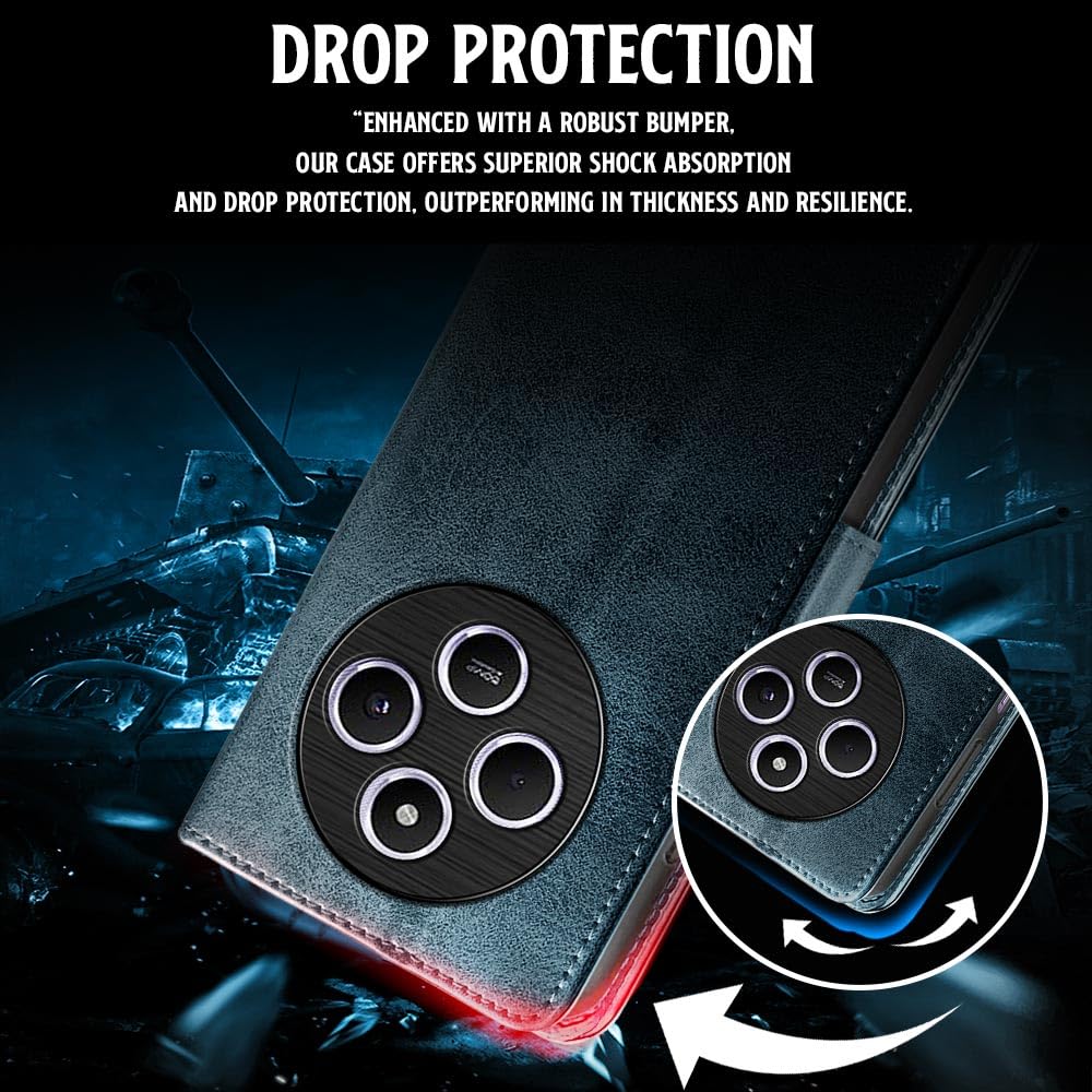 Shock Proof Flip Cover Back Case for Redmi A4 5G | Magnetic Wallet Leather Case with Stand