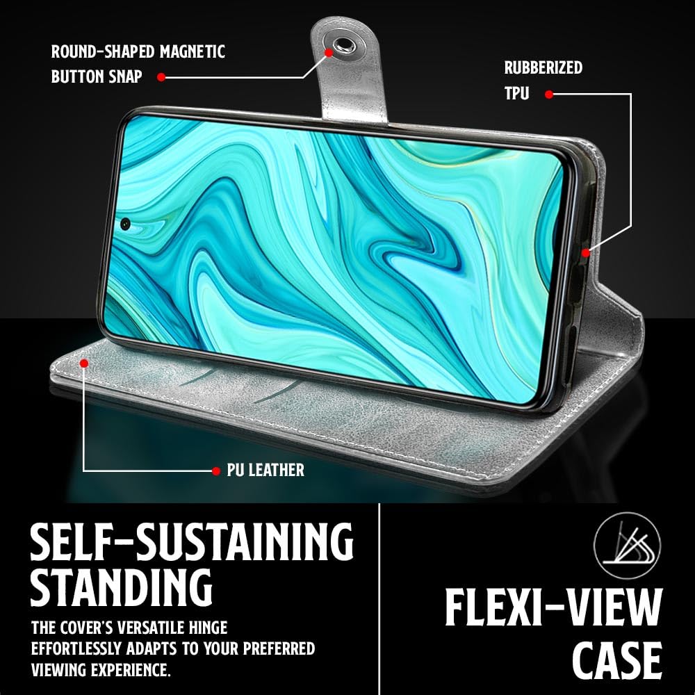 Buy premium shock proof flip cover back case for redmi note 10 lite. Leather finish with magnetic flip closure, wallet pockets and stand support. Durable protection against drops and scratches with a perfect fit for redmi note 10 lite.