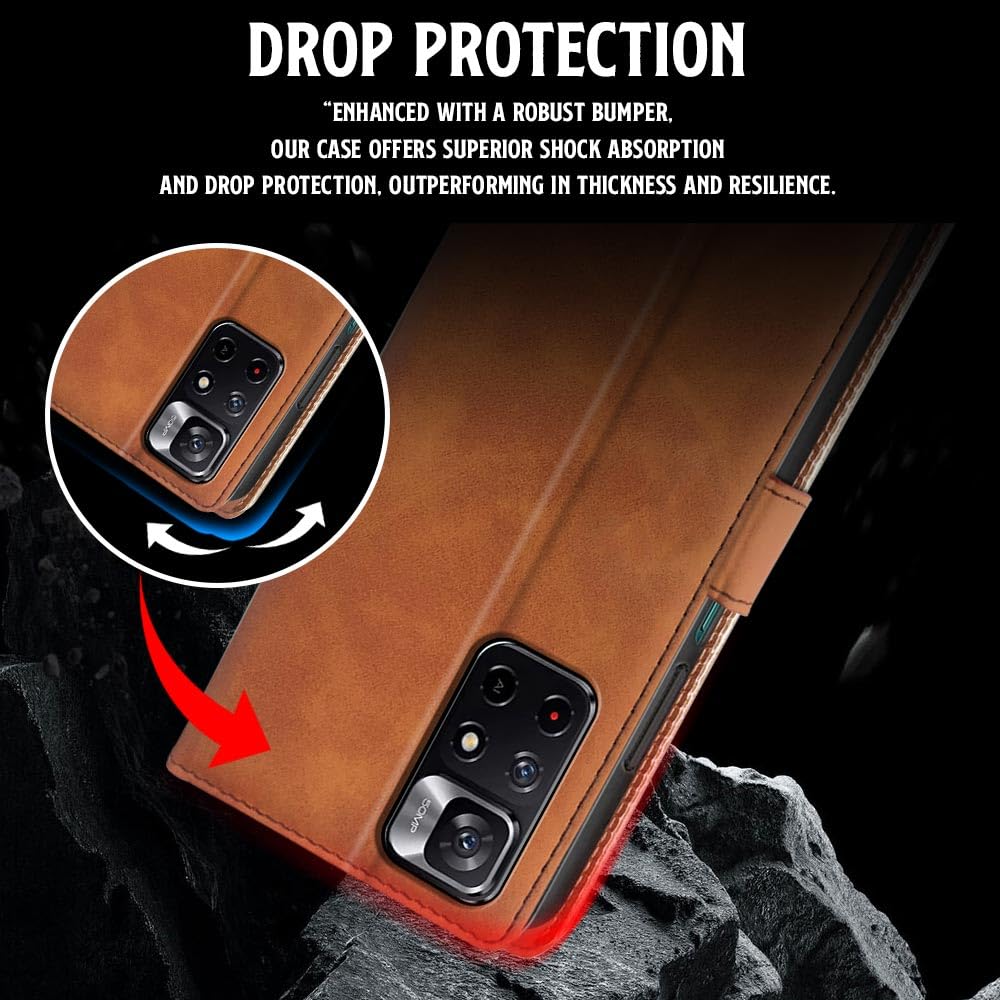 Shock Proof Flip Cover Back Case for Redmi Note 11T 5G | Magnetic Wallet Leather Case with Stand
