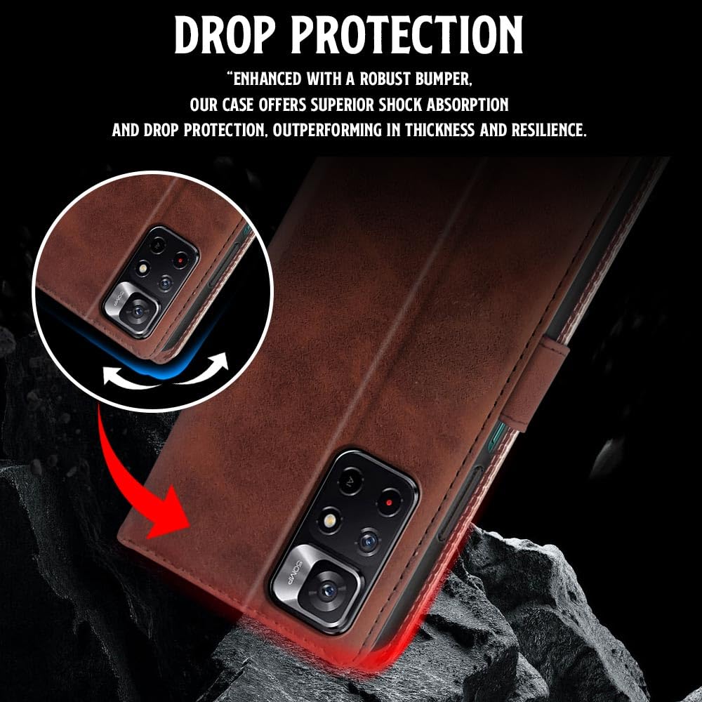 Shock Proof Flip Cover Back Case for Redmi Note 11T 5G | Magnetic Wallet Leather Case with Stand