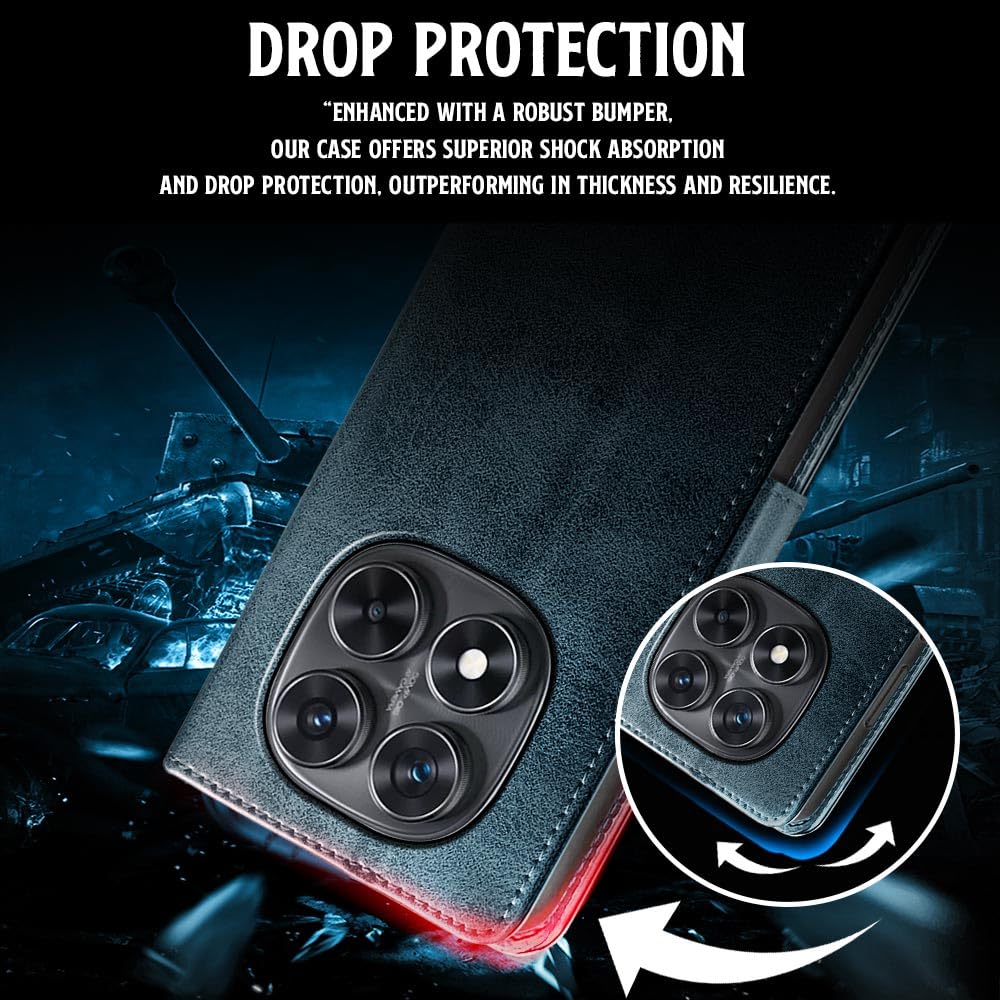 Shock Proof Flip Cover Back Case for Redmi Note 14 Pro 5G | Magnetic Wallet Leather Case with Stand