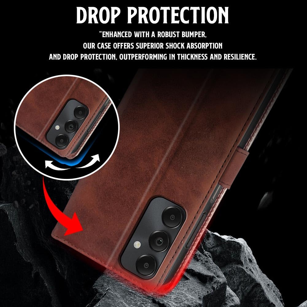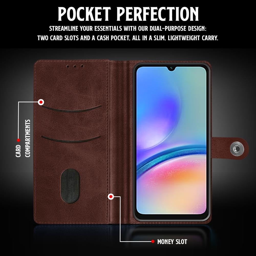 Buy premium shock proof flip cover back case for samsung galaxy a05s 5g. Leather finish with magnetic flip closure, wallet pockets and stand support. Durable protection against drops and scratches with a perfect fit for samsung galaxy a05s 5g.