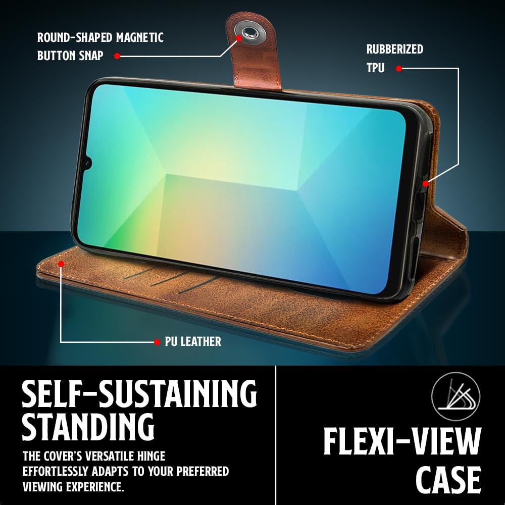 Shock Proof Flip Cover Back Case for Samsung Galaxy A06 | Magnetic Wallet Leather Case with Stand