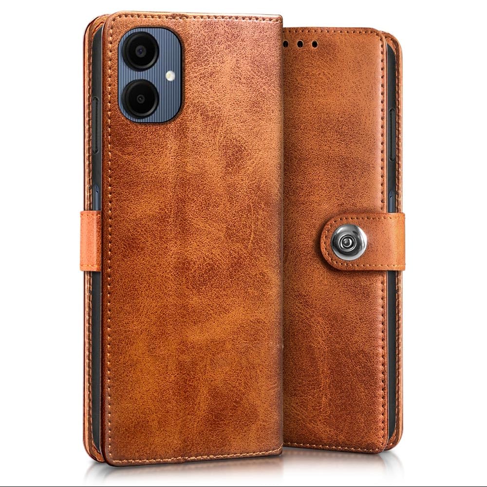 Buy premium shock proof flip cover back case for samsung galaxy a06. Leather finish with magnetic flip closure, wallet pockets and stand support. Durable protection against drops and scratches with a perfect fit for samsung galaxy a06.