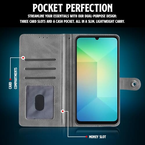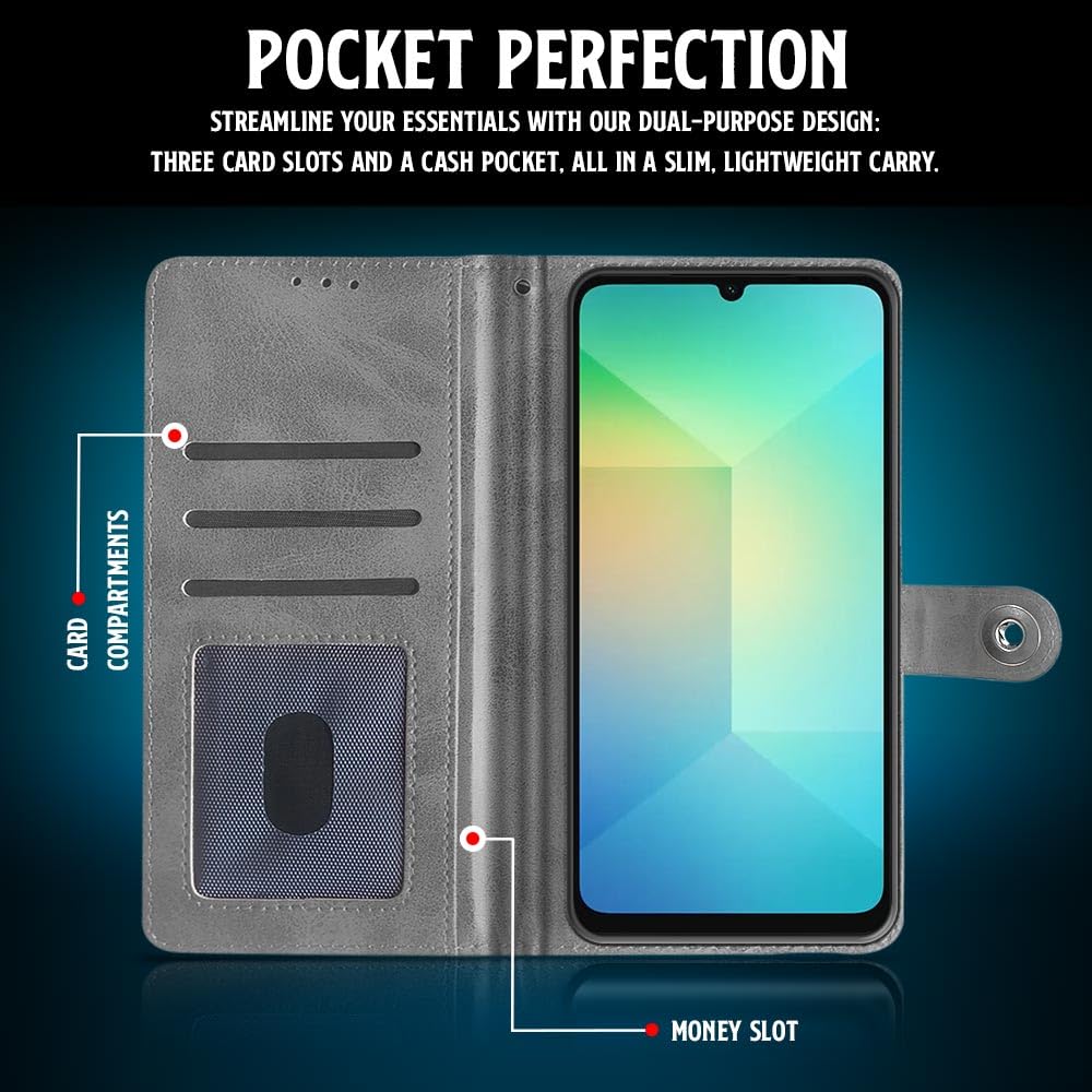 Shock Proof Flip Cover Back Case for Samsung Galaxy A06 | Magnetic Wallet Leather Case with Stand