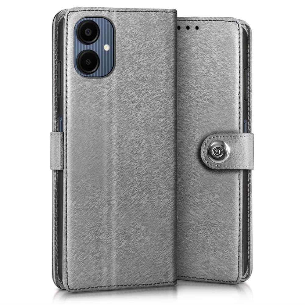 Buy premium shock proof flip cover back case for samsung galaxy a06. Leather finish with magnetic flip closure, wallet pockets and stand support. Durable protection against drops and scratches with a perfect fit for samsung galaxy a06.