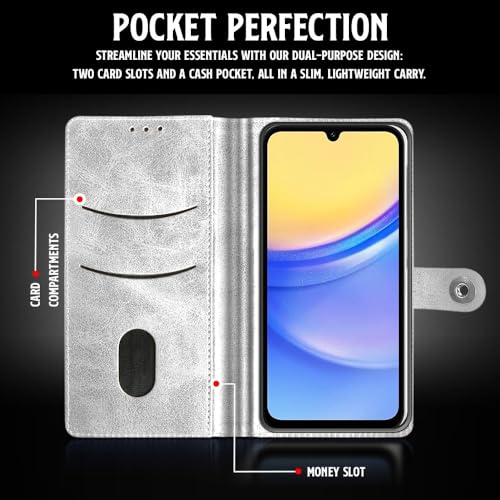 Shock Proof Flip Cover Back Case for Samsung Galaxy A15 5G | Magnetic Wallet Leather Case with Stand