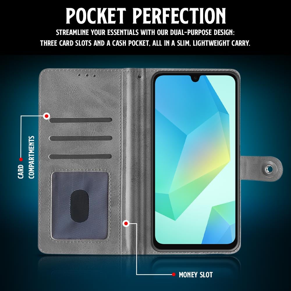 Shock Proof Flip Cover Back Case for Samsung Galaxy A16 5G | Magnetic Wallet Leather Case with Stand