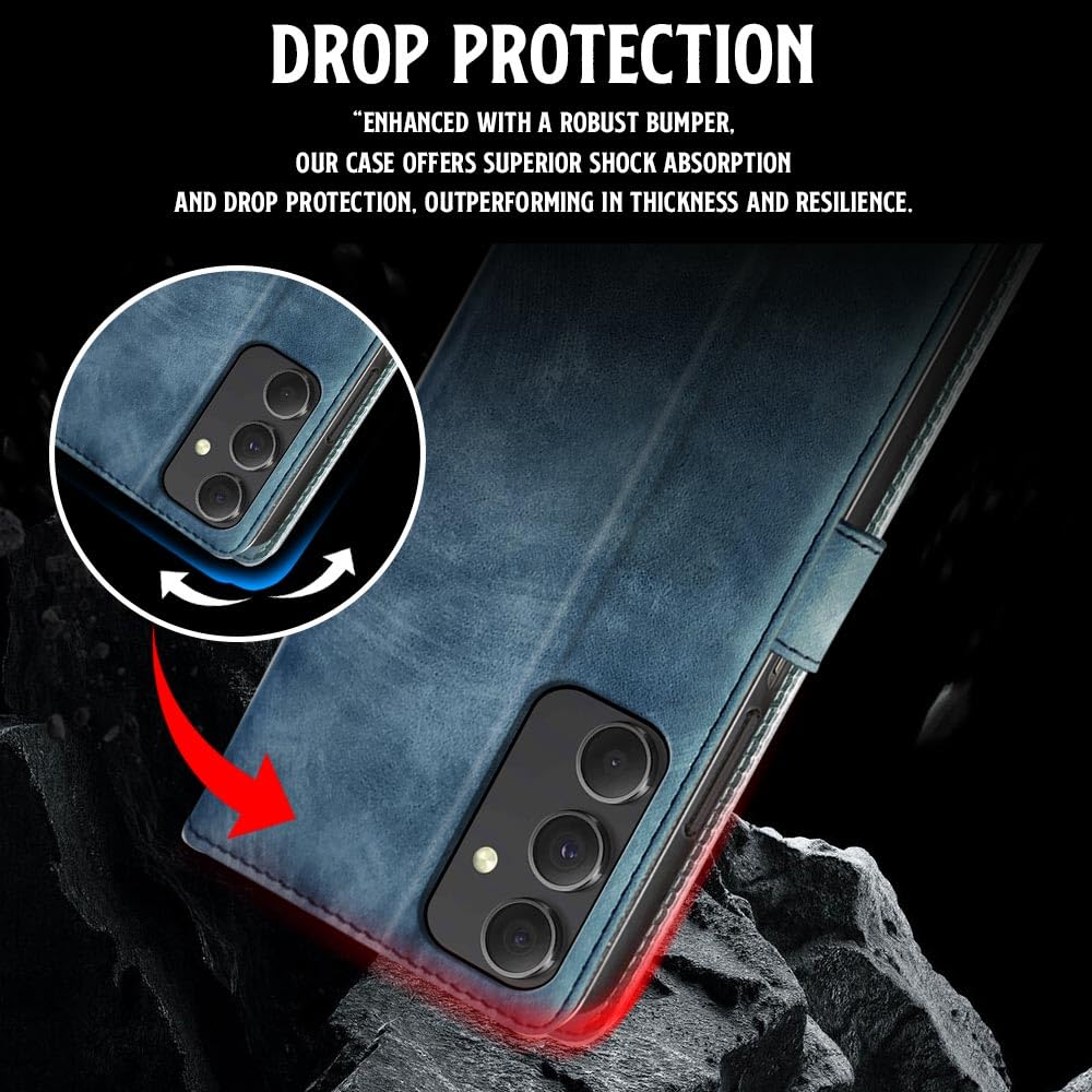 Buy premium shock proof flip cover back case for samsung galaxy a54 5g. Leather finish with magnetic flip closure, wallet pockets and stand support. Durable protection against drops and scratches with a perfect fit for samsung galaxy a54 5g.