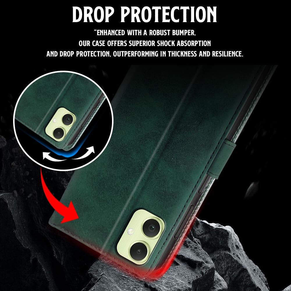 Shock Proof Flip Cover Back Case for Samsung Galaxy F05 | Magnetic Wallet Leather Case with Stand