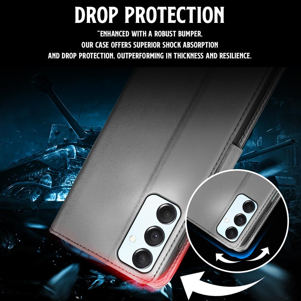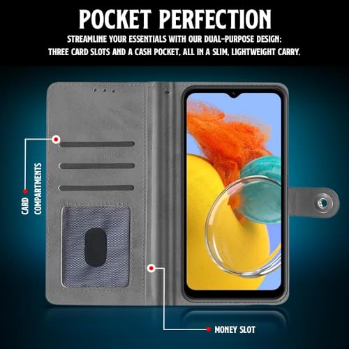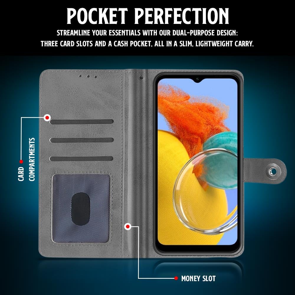 Shock Proof Flip Cover Back Case for Samsung Galaxy M14 5G | Magnetic Wallet Leather Case with Stand