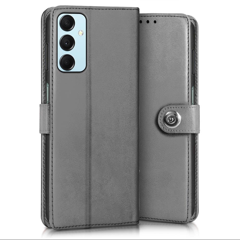 Buy premium shock proof flip cover back case for samsung galaxy m14 5g. Leather finish with magnetic flip closure, wallet pockets and stand support. Durable protection against drops and scratches with a perfect fit for samsung galaxy m14 5g.