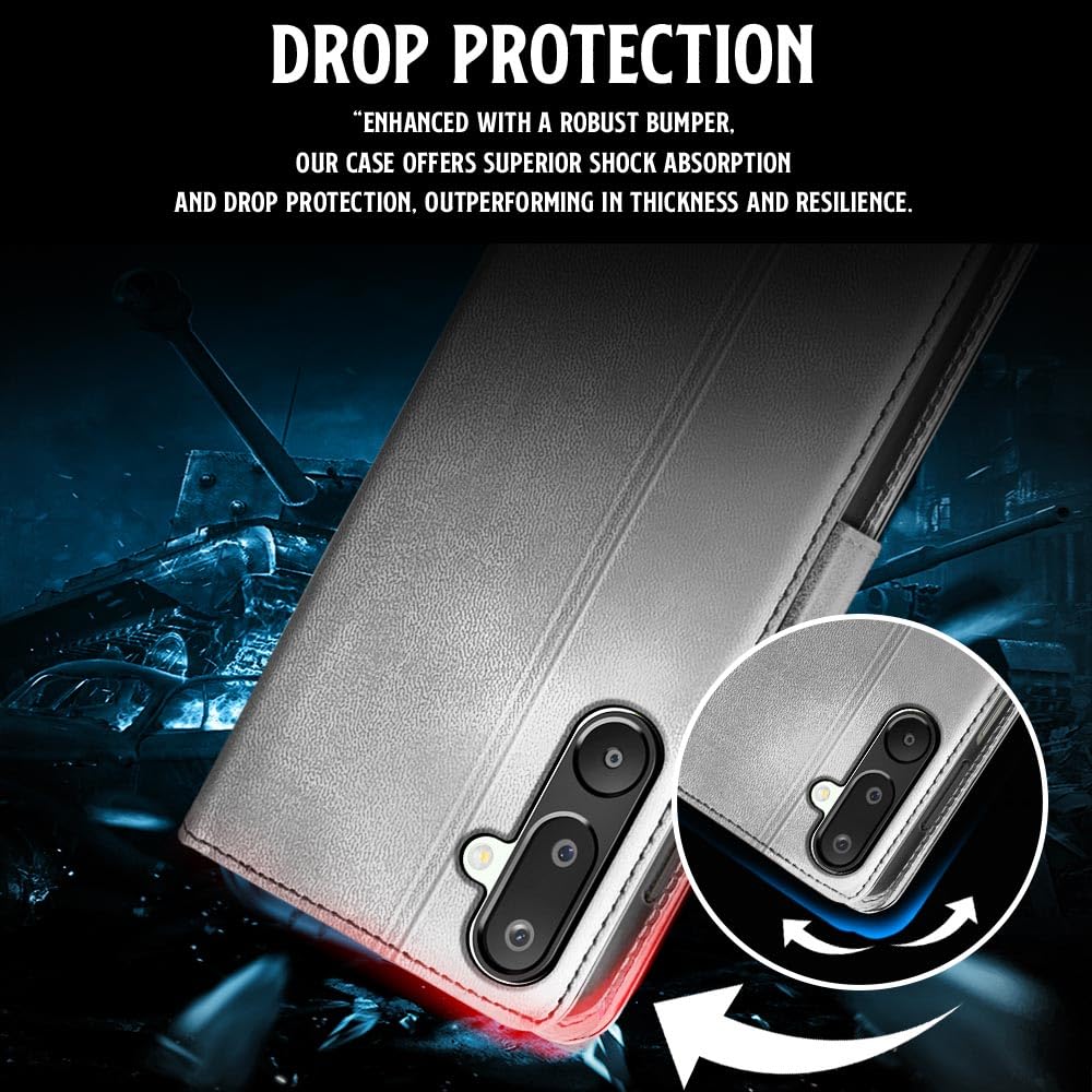 Shock Proof Flip Cover Back Case for Samsung Galaxy M16 5G | Magnetic Wallet Leather Case with Stand