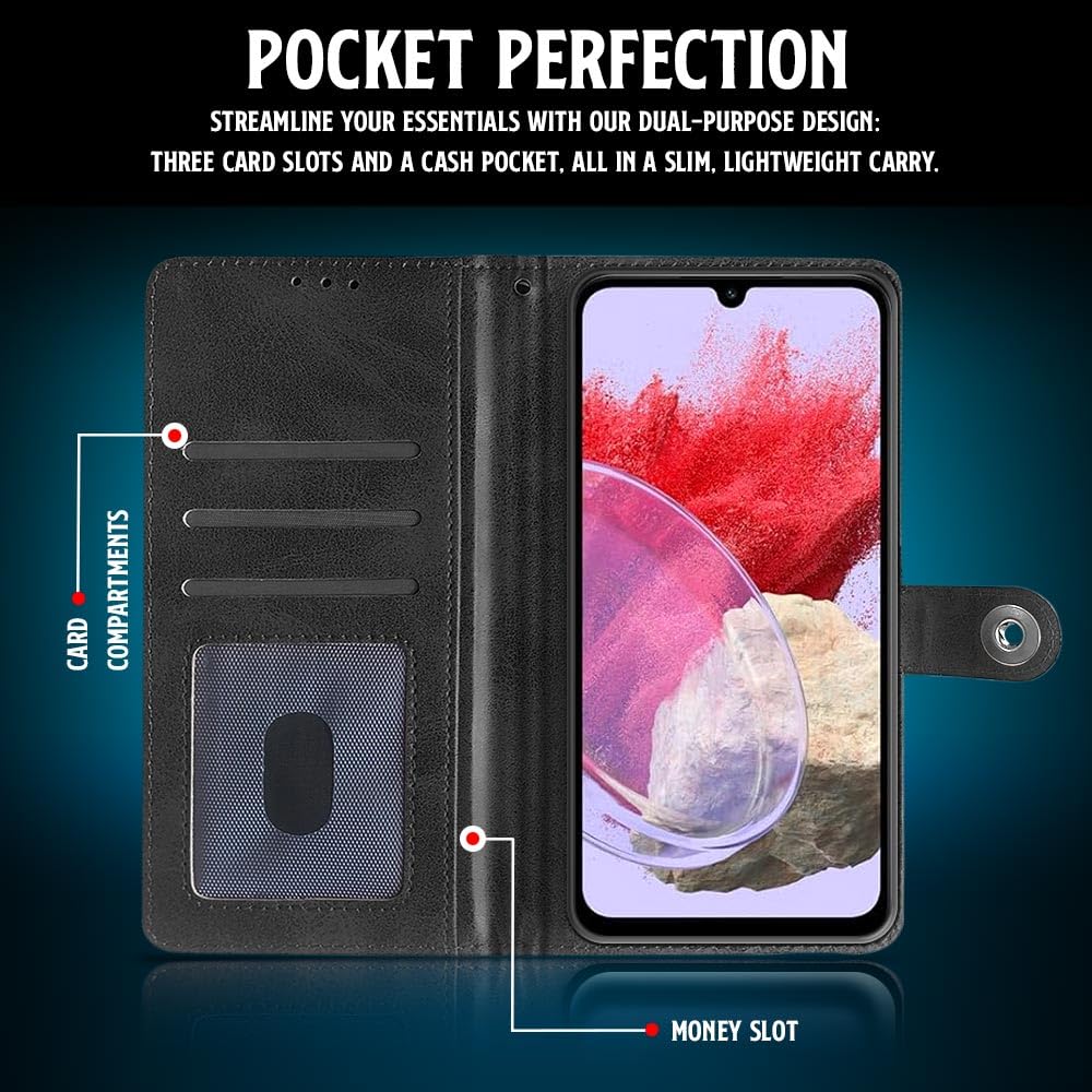 Shock Proof Flip Cover Back Case for Samsung Galaxy M34 5G | Magnetic Wallet Leather Case with Stand