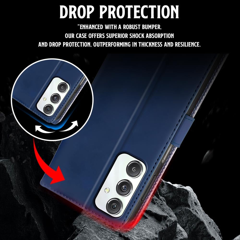 Buy premium shock proof flip cover back case for samsung galaxy m34 5g. Leather finish with magnetic flip closure, wallet pockets and stand support. Durable protection against drops and scratches with a perfect fit for samsung galaxy m34 5g.