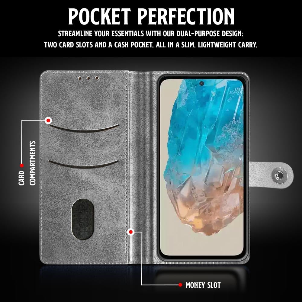 Shock Proof Flip Cover Back Case for Samsung Galaxy M35 5G | Magnetic Wallet Leather Case with Stand