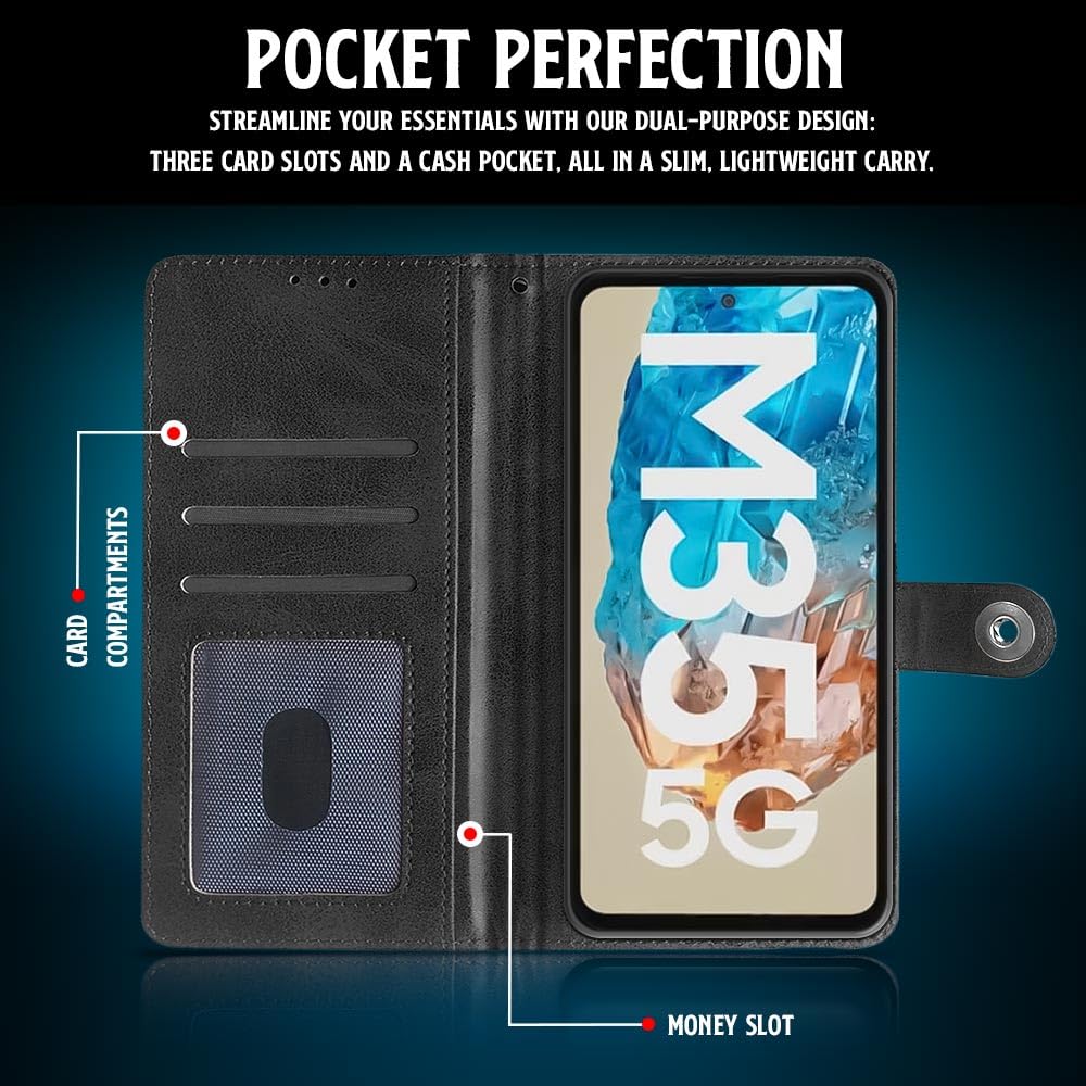 Shock Proof Flip Cover Back Case for Samsung Galaxy M35 5G | Magnetic Wallet Leather Case with Stand