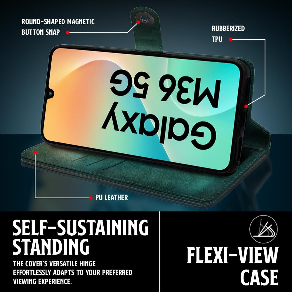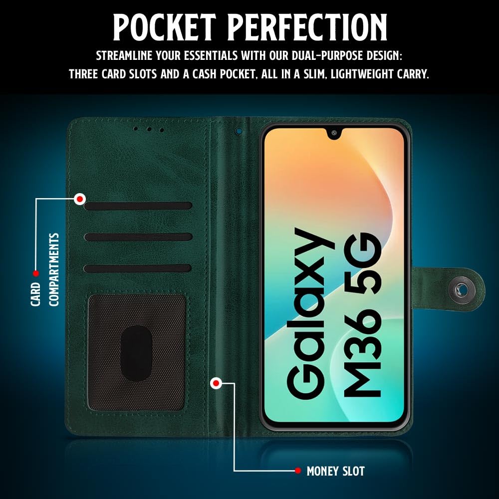 Shock Proof Flip Cover Back Case for Samsung Galaxy M36 5G | Magnetic Wallet Leather Case with Stand