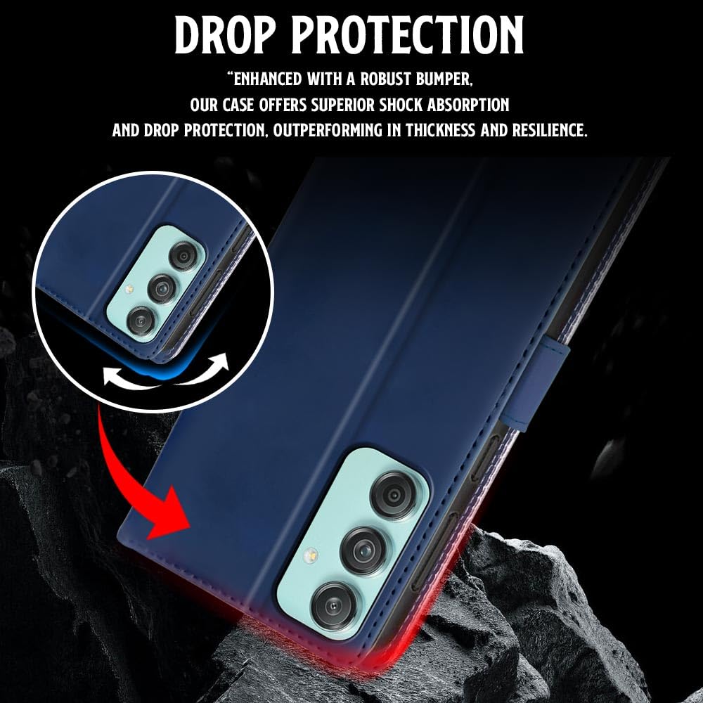 Shock Proof Flip Cover Back Case for Samsung Galaxy M55 5G | Magnetic Wallet Leather Case with Stand