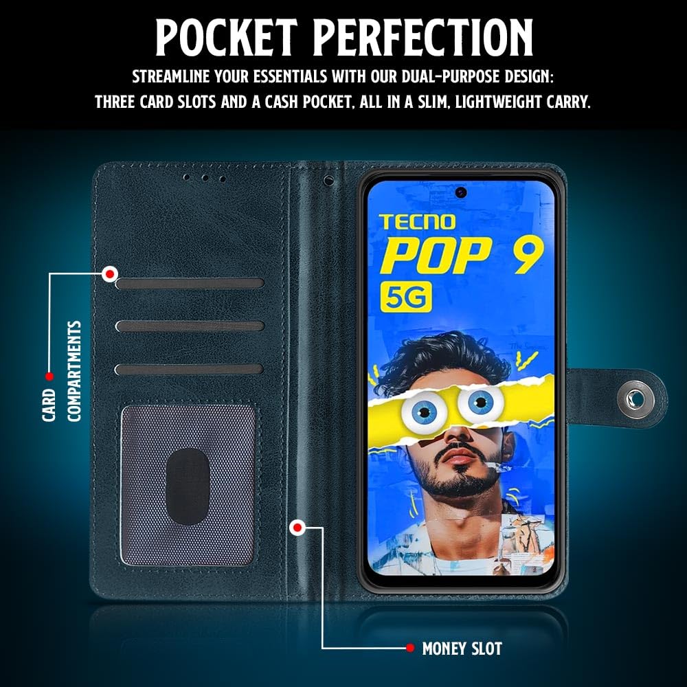 Shock Proof Flip Cover Back Case for Tecno Pop 9 5G | Magnetic Wallet Leather Case with Stand