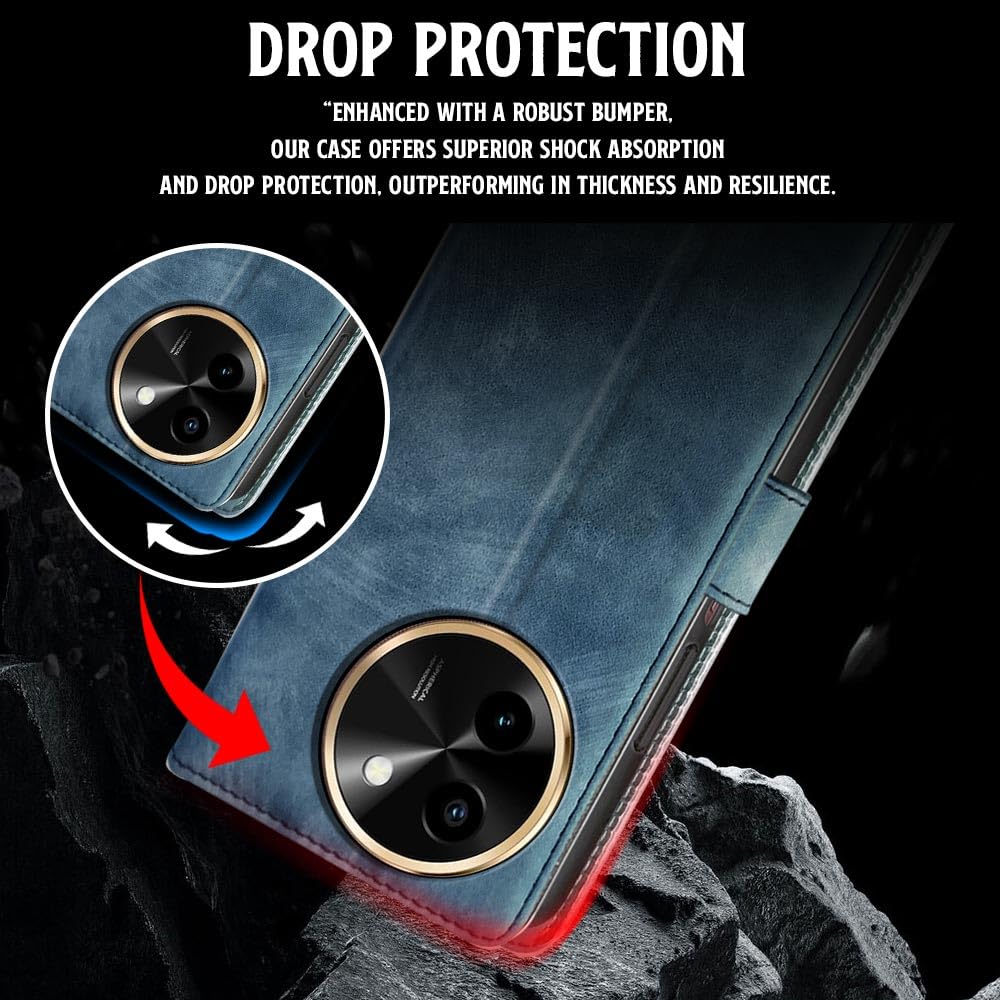 Shock Proof Flip Cover Back Case for Vivo T3X 5G | Magnetic Wallet Leather Case with Stand