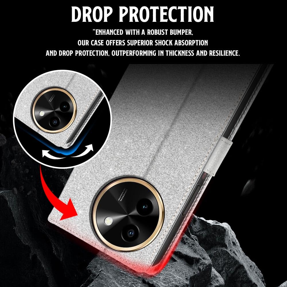 Buy premium shock proof flip cover back case for vivo t3x 5g. Leather finish with magnetic flip closure, wallet pockets and stand support. Durable protection against drops and scratches with a perfect fit for vivo t3x 5g.